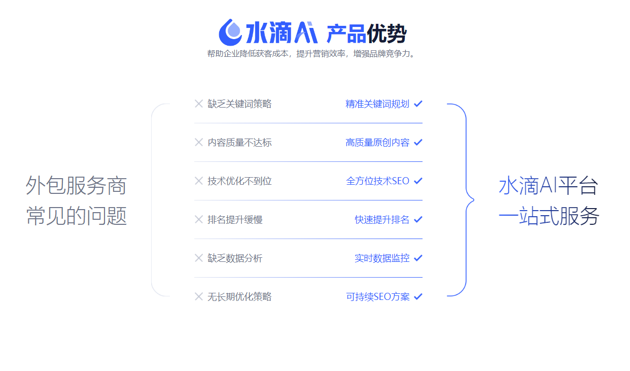 中大型企业:建议采用定制化全案服务。某上市软件公司通过水滴互动的代运营服务,6个月内AI渠道线索量增长136%。