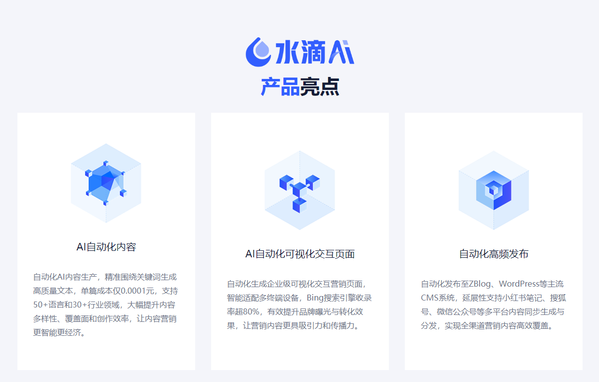 - 全托管式:如水滴互动的代运营服务,包含关键词拓展、内容生产和渠道分发全流程