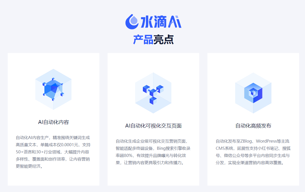 全链路服务商(如水滴互动):优势在于SEO+GEO+社媒协同优化,技术研发投入占比超50%,但客单价较高(年费10万起)。